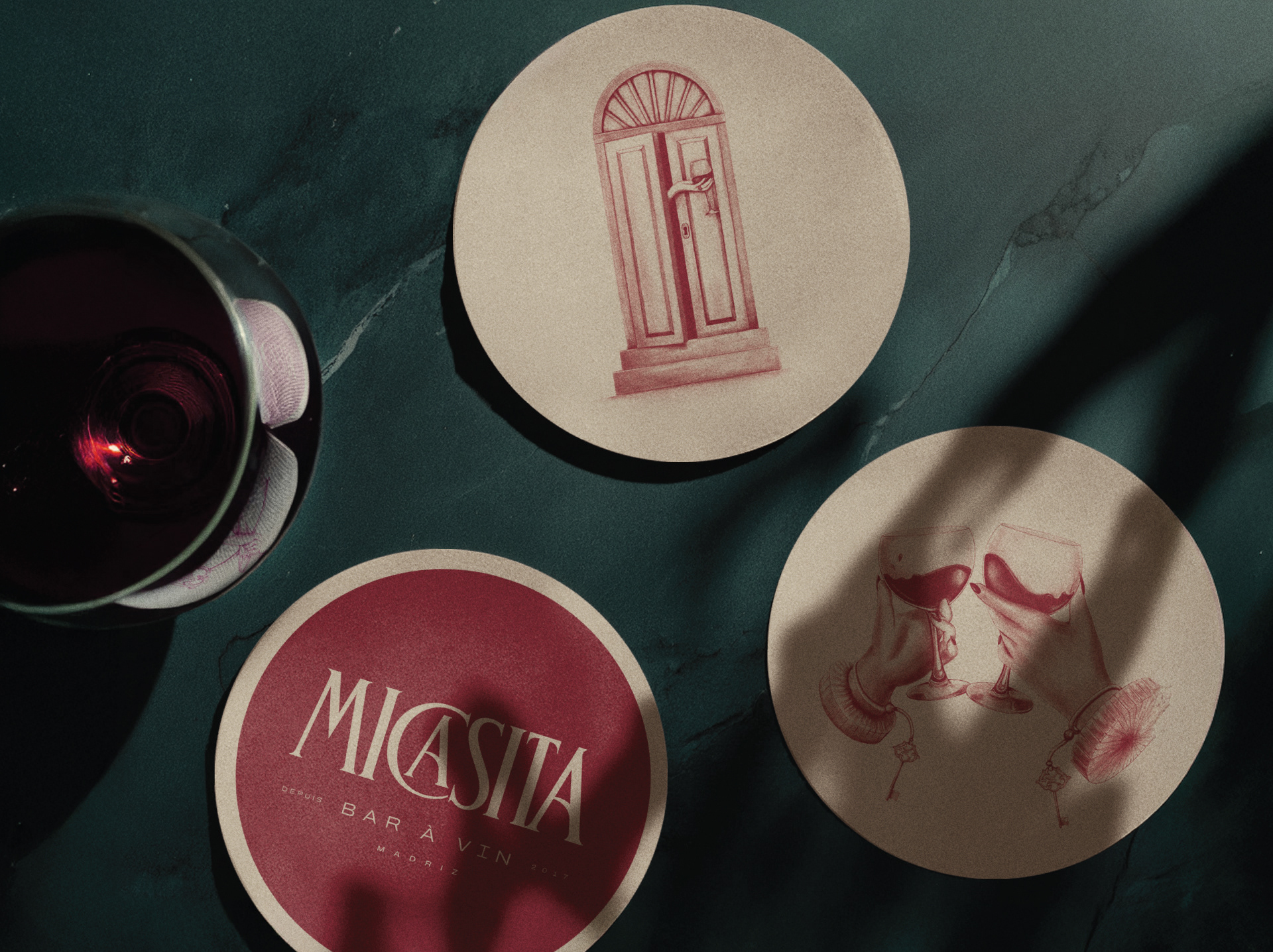 Para a identidade visual, além de nos inspirarmos nos clássicos bistrôs franceses, desenvolvemos ilustrações que, junto com a paleta de cores, destacam a personalidade do local. Em seu logotipo elegante e feito à mão, agregamos como símbolo central uma chave—representando tanto um convite para a casa quanto para o universo dos vinhos, refletindo também a hospitalidade de Georgia e Swell, os proprietários. Com um toque de mistério e elegância, a identidade visual captura a essência da experiência do vinho: uma celebração dos melhores momentos da vida, apreciados em um ambiente íntimo e acolhedor.